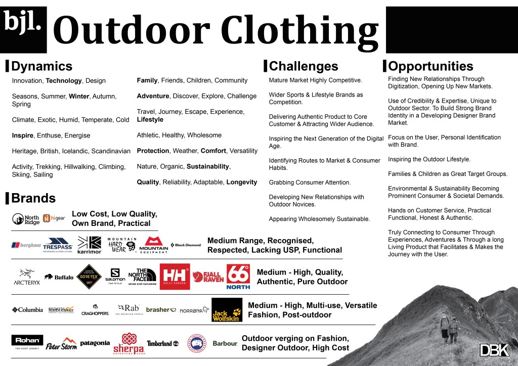 Use of credibility & expertise, unique to outdoor sector. To build strong brand identity in a developing designer brand market.
